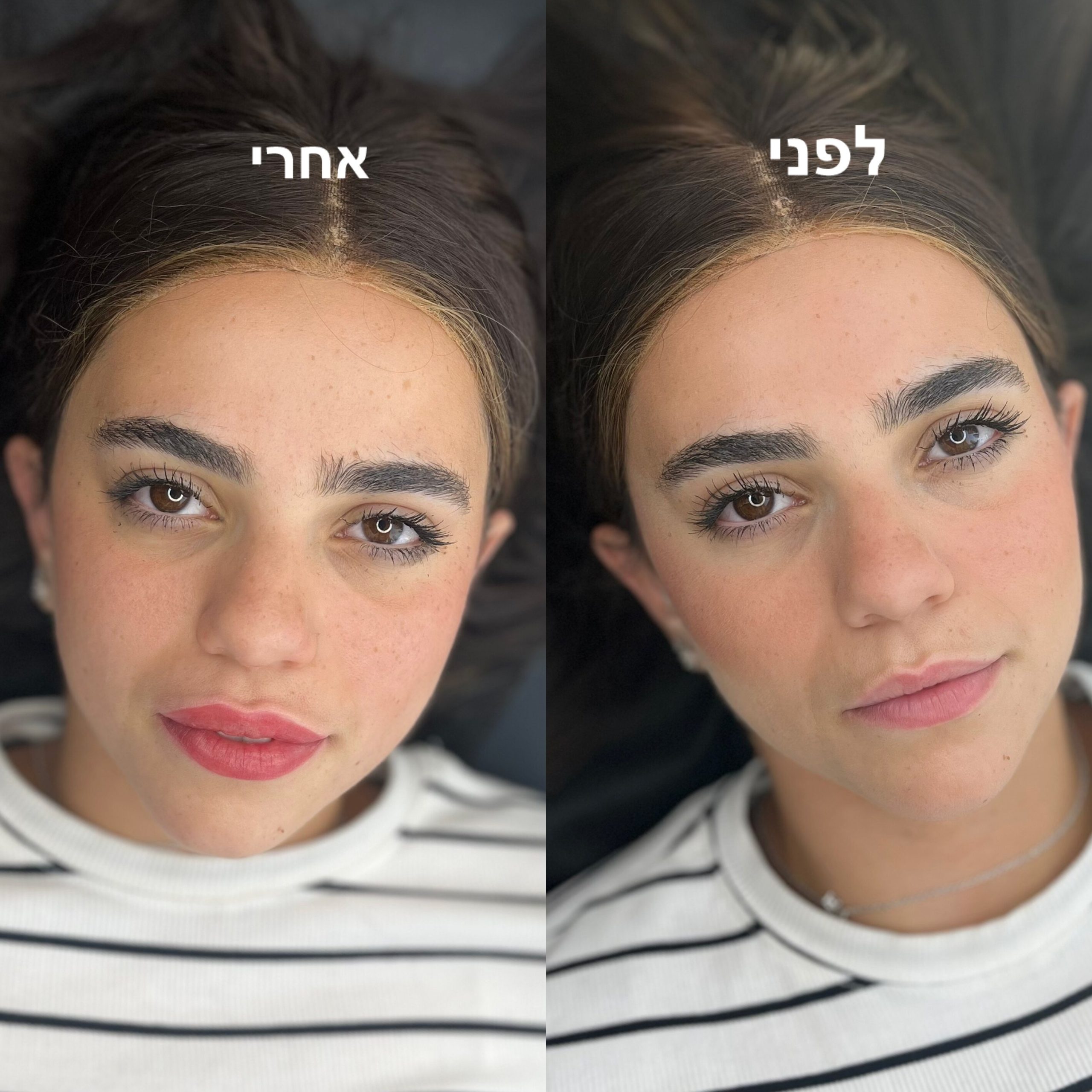 לאחר טיפול באיפור קבוע לשפתיים, התוצאה הייתה מדהימה: צבע טבעי ומחמיא, עמיד לאורך כל היום, גם אחרי קפה, ארוחה או שיחה ארוכה. היא חייכה והרגישה בטוחה ומטופחת בלי לחשוב פעמיים על השפתיים שלה.